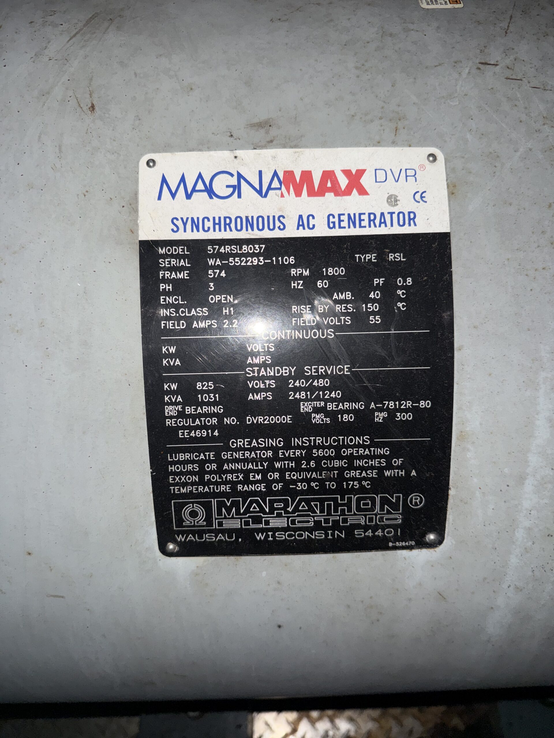 Power Rating: 820kW Standby/750Kw Prime